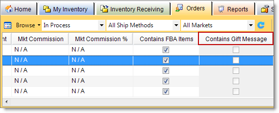 On the Orders tab, you can see which Amazon US orders have gift messages by clicking the Contains Gift Message column header.