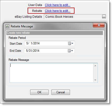 After you create a rebate, the rebate message displays in your listing and in all orders that contains the rebate item. When your rebate expires, it's automatically removed from your listing. You can add a rebate to an existing listing or change an existing rebate at any time.
