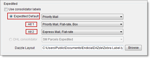 - At the time you print postage for an Expedited order, you can select one of the alternate shipping options.