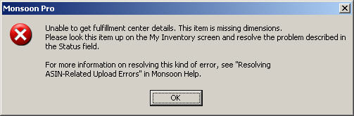This article contains information for troubleshooting error messages that you may receive when using Monsoon Marketplace and Fulfillment by Amazon (FBA).