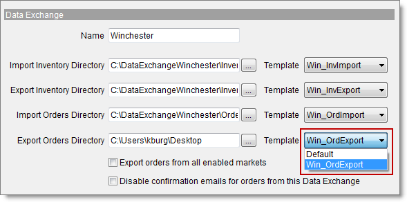 Select the folders that you want your data to import or export to, one folder for each type of file: InventoryImport, InventoryExport, OrdersImport, and OrdersExport.