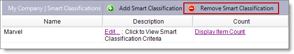 To later remove a smart classification, first remove it from any listing rule, pricing rule, shipping rule, receiving threshold, or inventory filter. After the smart classification is no longer in use, click a smart classification, then click Remove Smart Classification.