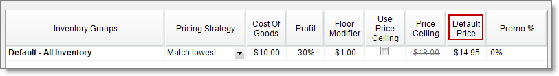 You can set up a default price to use when you receive an item for the first time and no competitive listing, market listing, or MSRP is found.
