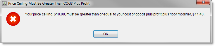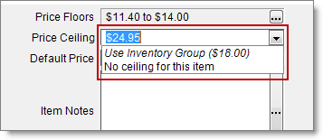 Price ceilings are calculated using a fixed or dynamic value which is applied globally, at the inventory group level, or at the item level.