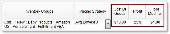 If you change your profit mode from Profit is percentage of Cost of Goods to Profit is a monetary amount, items in the inventory group reprice as follows: