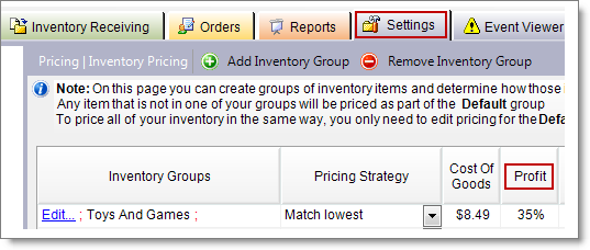 You can enter a value in Profit at the inventory group level on the Settings tab under Inventory Pricing: