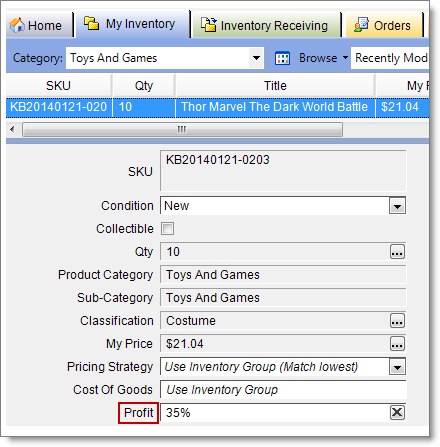 You can enter a positive or negative value in Profit—either a monetary amount or a percentage depending on your profit mode—to manage a specific item's or inventory group's price floor.