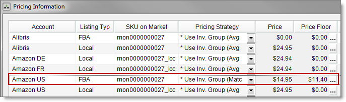 - When an item belongs to an inventory group that's set up to apply a price floor by market, the price floor displays as a range in Price Floors.