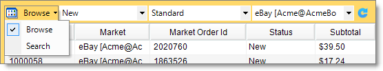 On the Orders tab, you can browse for an order or create a filtered list of orders using any combination of order status, shipping method, and market.