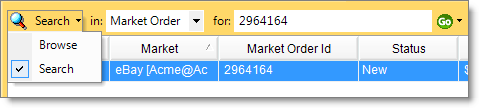 If you want to search for a specific order, you can use the Search feature to locate an order by ASIN, buyer name, buyer email address, FNSKU, ISBN, locator code, market order ID, Monsoon Marketplace order number, ship to name, SKU, title, or UPC.