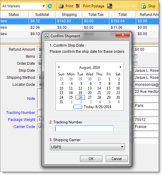 At the time you ship, Monsoon Marketplace moves the status of the order from New or Printed to Shipped and uploads a shipping confirmation to the market. It also sends an automatic shipping confirmation email to buyers for those markets that allow it.