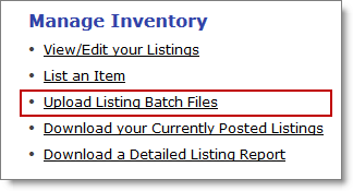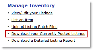 - Under Manage Inventory, click Download your Currently Posted Listings.