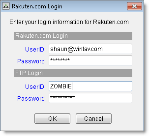 Rakuten.com Shopping Tech Support, ask them to confirm your credentials, then re-enter those credentials in Monsoon.
