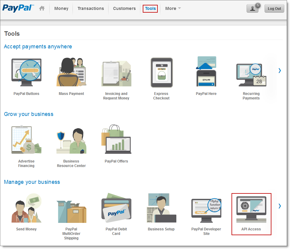 - Under Manage Your Business, click API Access.