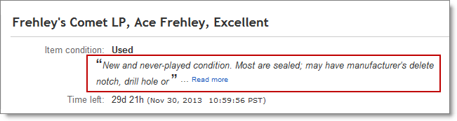 Item and classification notes automatically upload to the eBay condition description field when you create or revise a listing in Used condition.