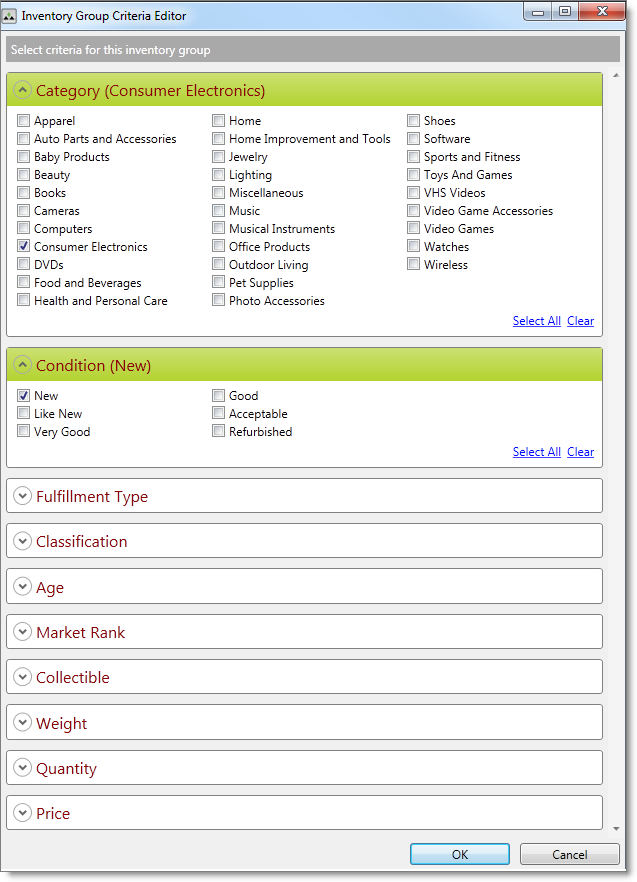 button for each criteria, select the criteria that define your inventory group, and then click OK.